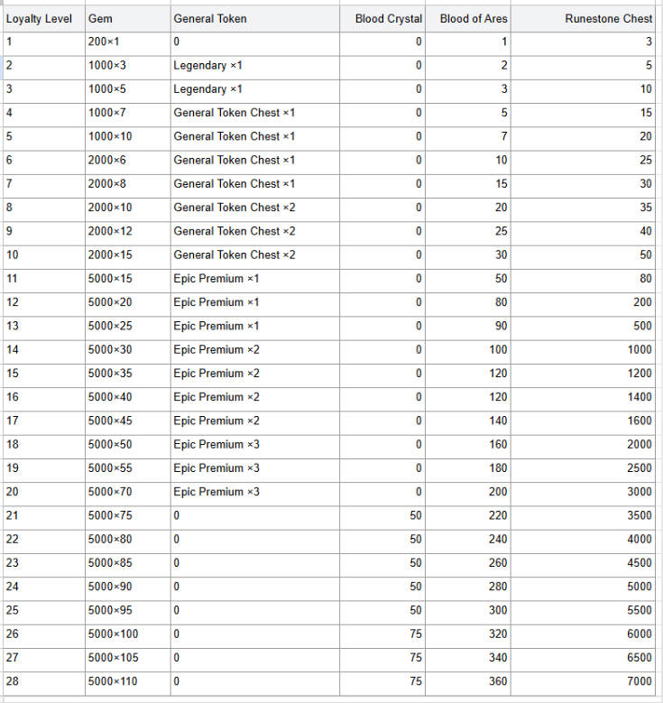 Improving Loyalty not only upgrades skills but also earns rewards. The specific items that can be obtained are shown in the table below.